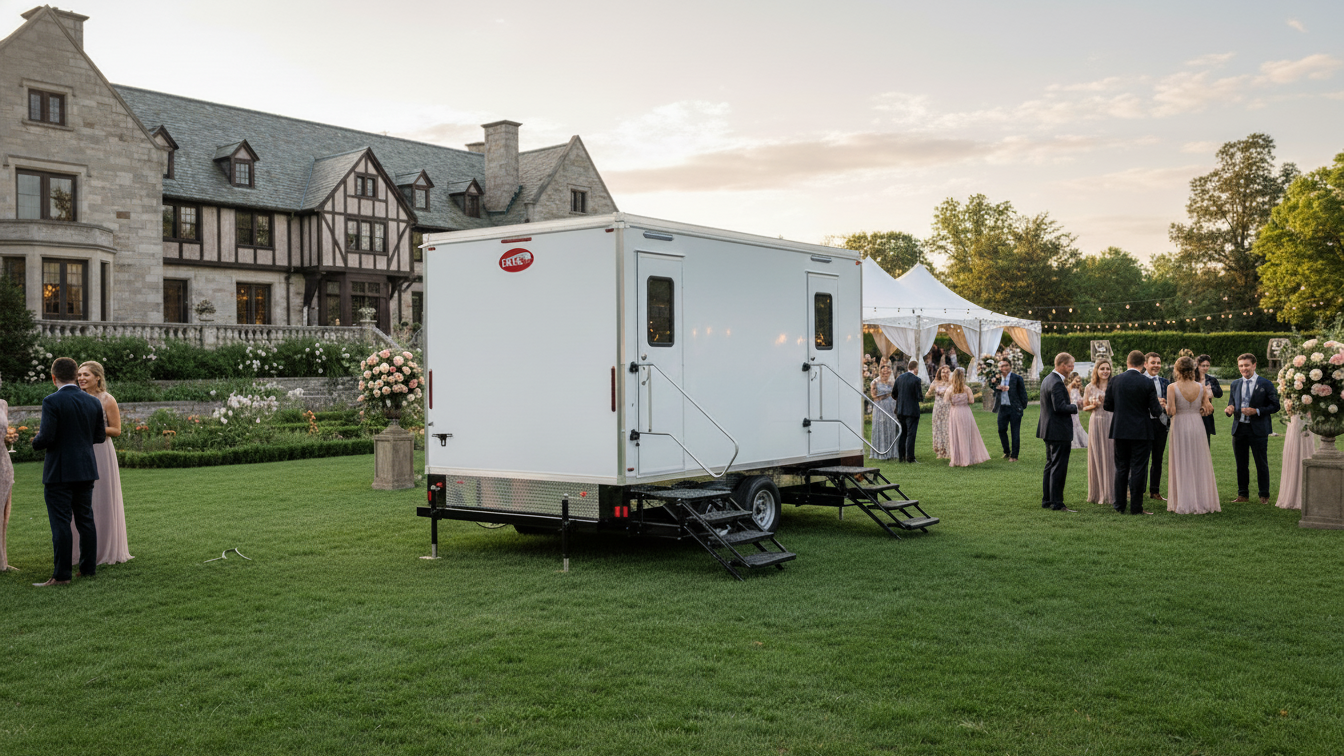Elevate Your Event Experience. Our luxury restroom trailers are designed to provide a superior restroom experience for your guests. From elegant weddings to high-profile corporate gatherings, our restroom trailers come equipped with air conditioning, flushing toilets, running water, and stylish interiors that make a lasting impression.